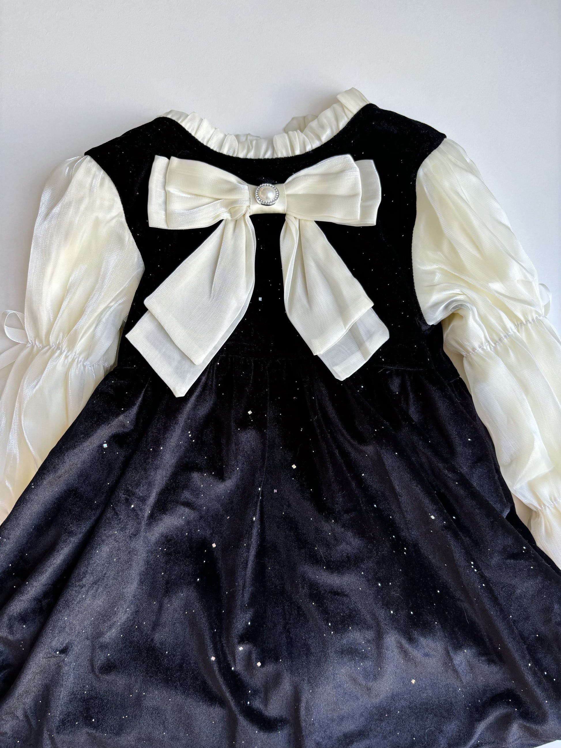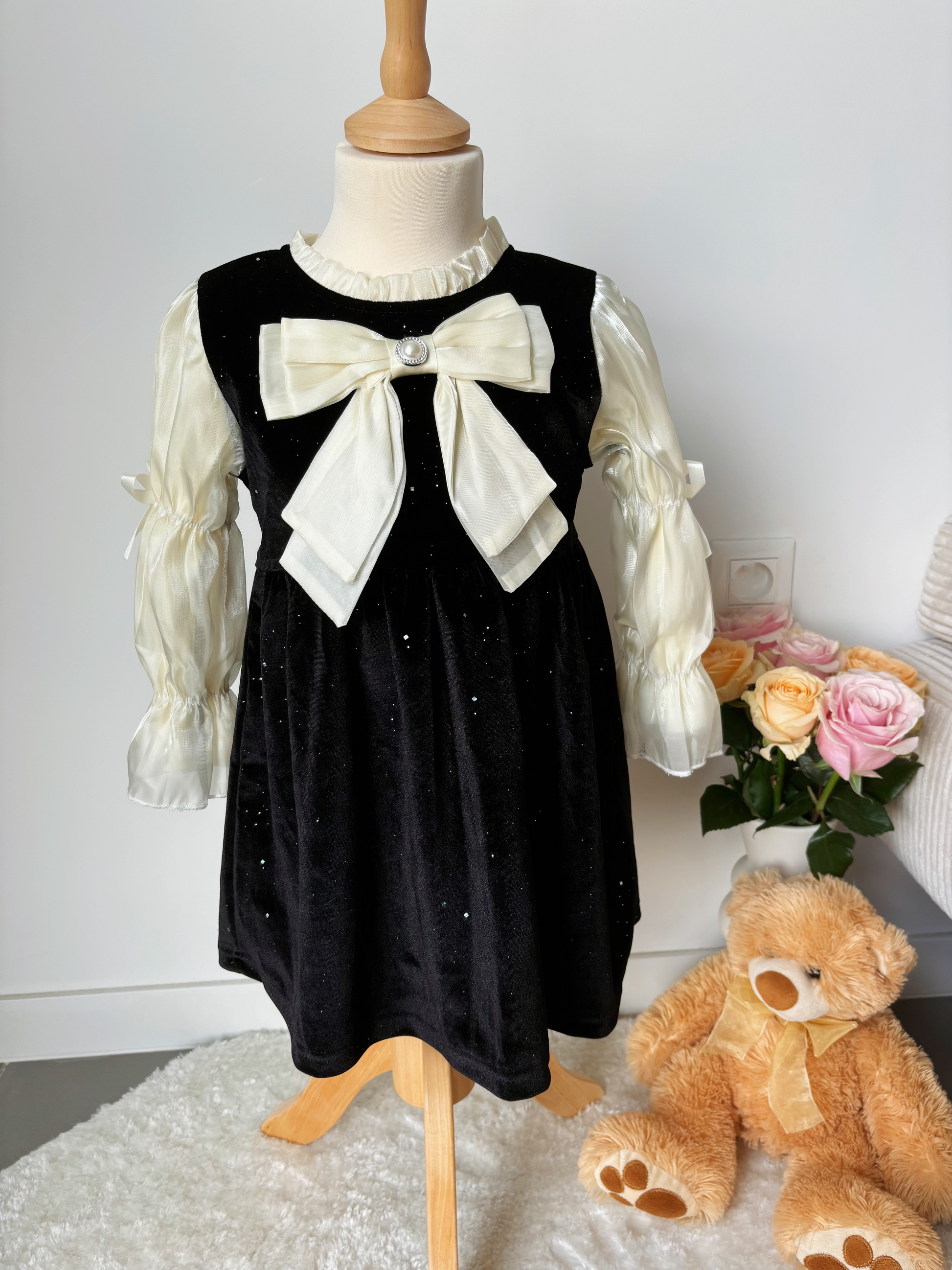 Vestido con moño elegante y forro afelpado de niña Ellie